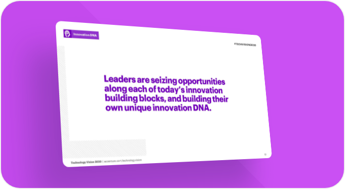 Innovation DNA #TECHVISION2020 Leaders are seizing opportunities along each of today’s innovation building blocks, and building their own unique innovation DNA. Technology Vision 2020 | accenture.com/technologyvision 10