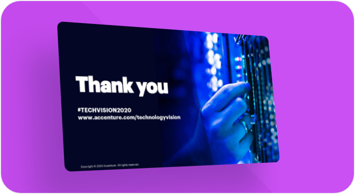 Tech Vision 2020 Interactive xDeck Page 18 Page 20Thank you #TECHVISION2020 www.accenture.com/technologyvision Copyright © 2020 Accenture. All rights reserved.