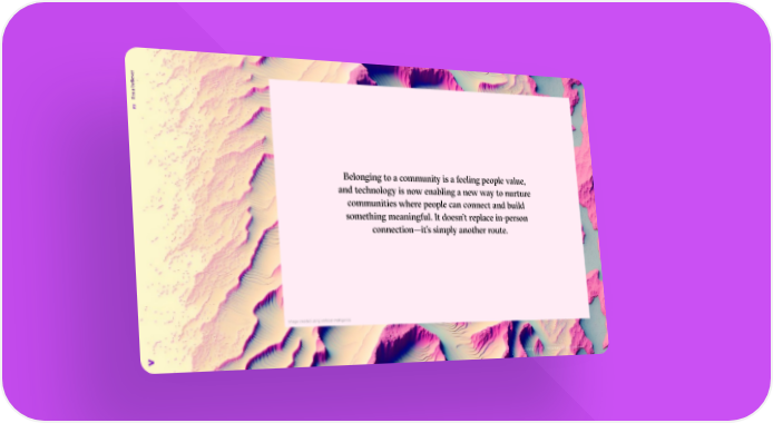 r e v e li e m a b I’ 02 Belonging to a community is a feeling people value, and technology is now enabling a new way to nurture communities where people can connect and build something meaningful. It doesn’t replace in-person connection—it’s simply another route. Image created using artificial intelligence Copyright © 2022 Accenture. All rights reserved. 28