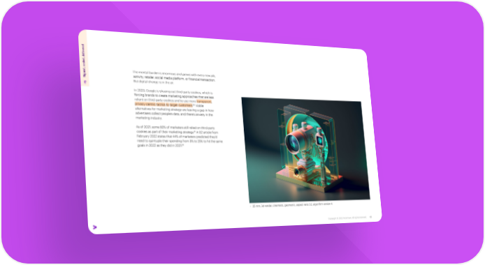d e r e v li e d, d e eal d, s The mental burden is enormous and grows with every new job, e gn activity, retailer, social media platform, or financial transaction. i S But digital change is in the air. 05 In 2023, Google is phasing out third-party cookies, which is forcing brands to create marketing approaches that are less reliant on third-party cookies and to use more transparent, 90 privacy-centric tactics to target customers. Viable alternatives for marketing strategy are leaving a gap in how advertisers collect people’s data, and there’s anxiety in the marketing industry. As of 2021, some 83% of marketers still relied on third-party 91 cookies as part of their marketing strategy. A G2 article from February 2022 states that 44% of marketers predicted they’d need to quintuple their spending from 5% to 25% to hit the same 92 goals in 2022 as they did in 2021. + 35 mm, 3d render, cinematic, geometric, aspect ratio 3:2, algorithm version 4 Copyright © 2022 Accenture. All rights reserved. 62