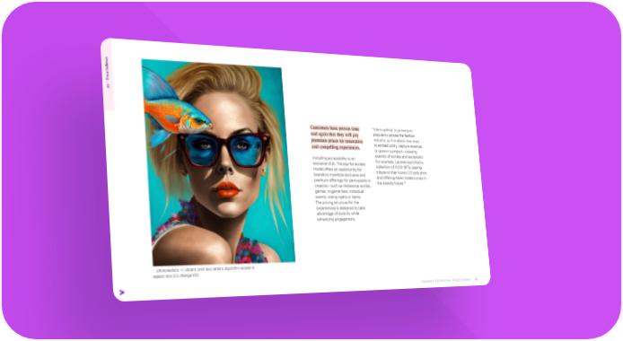 r e v e li e m a b I’ 02 Customers have proven time “Token-gating” is growing in and again that they will pay popularity across the fashion premium prices for innovative industry, as it enables new ways and compelling experiences, to embed utility, capture revenue, or govern a project—creating including accessibility to an scarcity of access and exclusivity. exclusive club. The pay-for-access For example, Lacoste launched a model offers an opportunity for collection of 11,212 NFTs, paying brands to monetize exclusive and tribute to their iconic L12 polo shirt, premium offerings for participants or and offering token holders a say in 33 creators—such as metaverse worlds, the brand’s future. games, in-game tiers, individual events, voting rights or items. The pricing structure for the experiences is designed to take advantage of scarcity while enhancing engagement. + photorealistic +1, vibrant, omit text; letters, algorithm version 4, aspect ratio 2:3, change 100 Copyright © 2022 Accenture. All rights reserved. 20