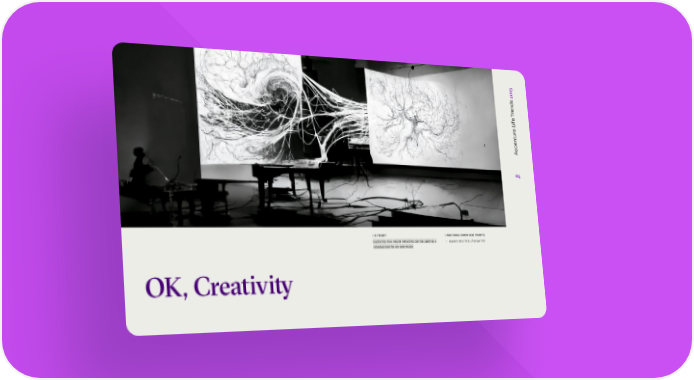 23 20 ds en r T e f i L e r u t en c c A 04 / AI PROMPT / ADDITIONAL HUMAN USER PROMPTS Exploring how neural networks can be used as a + aspect ratio 16:9, change 100 creative tool for art and music OK, Creativity