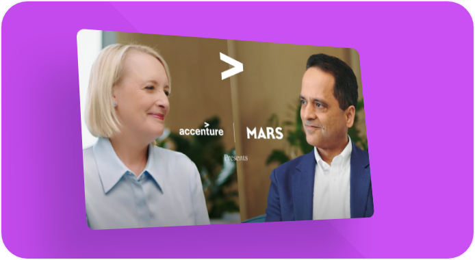 Accenture Chair and CEO Julie Sweet sat down with Mars Chief Digital Officer Sandeep Dadlani to discuss how Accenture’s partnership with Mars helped them use tech data, AI, and new ways of working to catapult to becoming a digital-first industry leader.