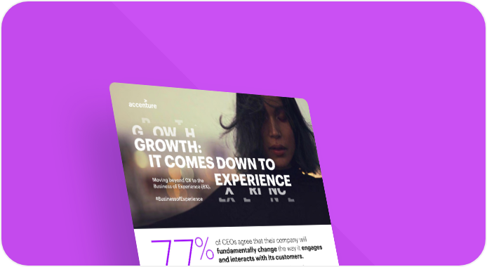 Moving beyond CX to the Business of Experience (BX). #BusinessofExperience of CEOs agree that their company will %fundamentally change the way it engages and interacts with its customers. 77 As organizations pivot from pandemic recovery back to growth, many are realizing their strategy needs to be redesigned. The question is how? The answer: become a Business of Experience (BX) This allows organizations to become customer-obsessed and reignite growth. BX leaders differentiate themselves around four winning ways. Obsess about Make experience customer needs innovation – and use that as your compass an everyday habit * * 55% vs vs ** ** ** 26% 52% have the ability to translate customer data have the ability to attribute/explicitly into actions and identify target segments, link investments in relevant customer leveraging advanced customer analytics. experience to business results. Expand the Sync the tech, data experience remit and human agendas across your organization * % * vs % ** 25% 58 have the ability to infuse customer vs experience thinking across organization and partners, at all levels. ** 25% have the ability to define and deliver new digital capabilities at the right speed and with sufficient agility. It pays off… On average, BX leaders outperform CX-oriented companies in year-on-year profitability growth by 6x. From insights to action, the path to extraordinary value starts here. * Today’s Top 20% leading companies: Top 20% of survey respondents who outperformed peers on recent revenue growth and business cycle endurance **Other 80%: The rest – the lower 80% of survey respondents based on recent revenue growth and business cycle endurance Copyright © 2020 Accenture. All rights reserved.