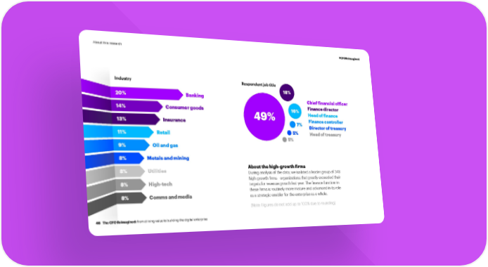 About this research #CFOReimagined Industry Respondent job title 18% 20% Banking Chief financial officer 14% Consumer goods 16% Finance director 49% Head of finance 13% Insurance 7% Finance controller Director of treasury 11% Retail 5% Head of treasury 5% 9% Oil and gas 8% Metals and mining 8% Utilities About the high-growth firms During analysis of the data, we isolated a leader group of 349 8% High-tech high-growth firms—organizations that greatly exceeded their targets for revenue growth last year. The finance function in these firms is routinely more mature and advanced in its role 8% Comms and media as a strategic enabler for the enterprise as a whole. (Note: Figures do not add up to 100% due to rounding) 46 The CFO Reimagined: from driving value to building the digital enterprise