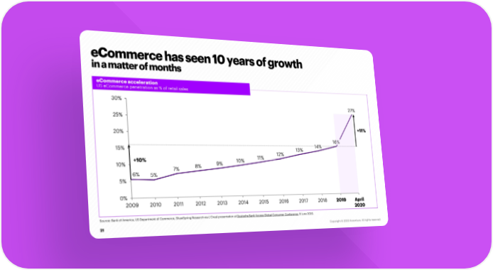 eCommerce has seen 10 years of growth in a matter of months eCommerce acceleration US eCommerce penetration as % of retail sales 30% 27% 25% 20% +11% 14% 16% 15% 13% 11% 12% 10% +10% 9% 10% 7% 8% 6% 5% 5% 0% 2009 2010 2011 2012 2013 2014 2015 2016 2017 2018 2019 April 2020 Source: Bank of America, US Department of Commerce, ShawSpringResearch via L’Orealpresentation at Deutsche Bank Access Global Consumer Conference, 9 June 2020. 21