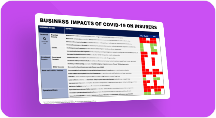 BUSINESS IMPACTSOFCOVID-19ONINSURERS BUSINESSMODEL IMPACT Life/ Health P&C Technical Premium Weakeneddemandduetoeconomiccontraction,risingunemploymentandsupplychaindisruption Income Decreasein-person salesasaresultofwidespreadsocialdistancingimpactinginsuranceface-to-facedistribution Focus next Increaseindirectandonlinesalesas aresultofincreasedonline platformtraffic and useofdronesandmobiledevices slide Increasedawarenessanddemandforinnovativeproductsaround preventionandrestorationwithrespecttosystemicrisks Claims Decliningaccidentfrequencyas aresultofsocialdistancingandremoteworkforce deployment Increasedandunfavorablelitigationasaresultofpolicy wordingambiguity onexclusionsand governmentmandates/pressure Increasedlife/healthinsuranceclaimsasaresultofCOVID-19impactonhealthandmortality Investment Investment Lowinterestratesreducing future investmentincome onnewandrollingsecurities Income Income Increasedcreditspreadanddefaultsoncertainportfoliosegments(e.g.below-investment-gradefixed-incomesecurities) Decliningportfolioearningsasa resultofcostlierhedgingand postponementofstocks’dividendspayments OtherIncome Decreasedfee-basedincomeasaresultoflowervalueofAUM AssetandLiabilityPosition Lowerunrealizedcapitalgainsdrivingcapitalizationandsolvencylevelsdownas aresultofassetrevaluation Lowerrealizedcapitalgainsdriving liquiditysqueeze as aresultofaccelerated liquidationand assetrevaluation Defaultsonbelow-investment-gradefixed-incomesecuritiesimpactingcapitalpositions Lowerinflationcould resultinmorefavorableprioryearreservedevelopmentparticularlyonproperty lines Increasedreservingduetoassumptionrevisionsfor long-tail andinterest-sensitiveproducts withembedded guarantees Ineffectivehedgingleading tooverallreductioninportfoliobalance OperationalCosts Operationalconstraintsandhigherexpensesasaresultofremoteworkforce mobilizationandcrisismanagement Increaseincyberattacksanddatabreachesas aresultoflargescaleworkforce digitizationanddatademand Reductioninfixedcostsasaresultofremoteworkforceefficiencyandreductionsin-officespacerequirements Copyright © 2020 Accenture. All rightsreserved. Source: Accenture Research based on Capital IQ data, Analyst Insights, Market Research, Press