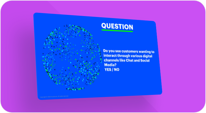 QUESTION Do you see customers wantingto interact through various digital channels like Chat and Social Media? YES / NO Copyright © 2020 Accenture. All rightsreserved.