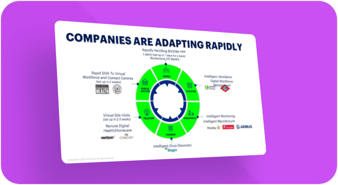 COMPANIES ARE ADAPTING RAPIDLY Rapidly Handling $500Bn PPP Loans (set-up in 7 days for a bank) Numerous US Banks Rapid Shift To Virtual BANKS Intelligent Ventilation Workforce and Contact Centres Digital Workforce (set-up in 2 weeks) Management PUBLIC UTILITIES SECTOR Virtual Site-Visits Intelligent Monitoring (set-up in 2-3 weeks) TELECOM INDUSTRIAL Remote Digital Intelligent Manufacturing Health/Homecare PHARMA Intelligent Drug Discovery Copyright © 2020 Accenture. All rightsreserved.