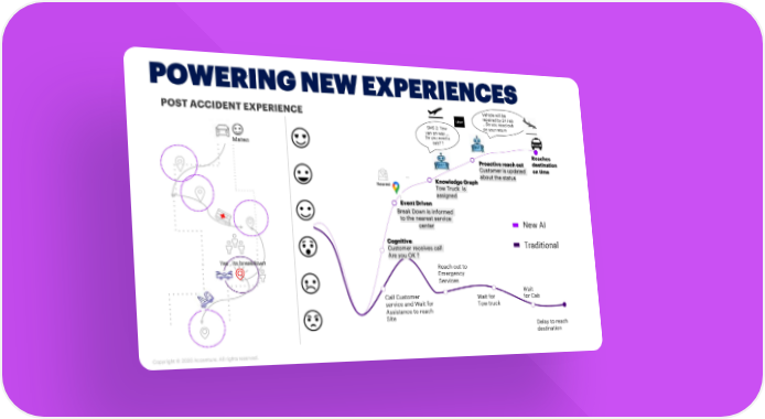 POWERING NEW EXPERIENCES Vehicle will be POST ACCIDENT EXPERIENCE repaired by 24 Feb .. Do you need cab SMS 2: Tow on your return van on way … Do you need a Mateo cab? ? Reaches Proactive reach out destination Customer is updated on time Knowledge Graph about the status Nearest Tow Truck is assigned Event Driven Break Down is informed to the nearest service New AI center Cognitive: Traditional Customer receives call Are you OK ? Yes , its breakdown Reach out to Emergency Services Wait Call Customer Wait for for Cab service and Wait for Tow truck Assistance to reach Site Delay to reach destination Copyright © 2020 Accenture. All rightsreserved.