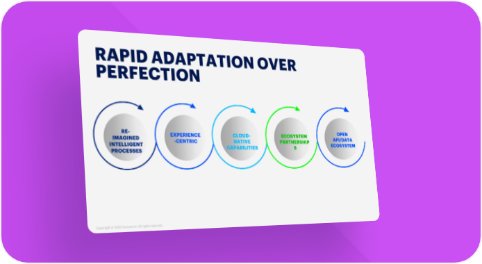 RAPID ADAPTATION OVER PERFECTION RE- EXPERIENCE CLOUD- ECOSYSTEM OPEN IMAGINED -CENTRIC NATIVE PARTNERSHIP API/DATA INTELLIGENT CAPABILITIES S ECOSYSTEM PROCESSES Copyright © 2020 Accenture. All rightsreserved.