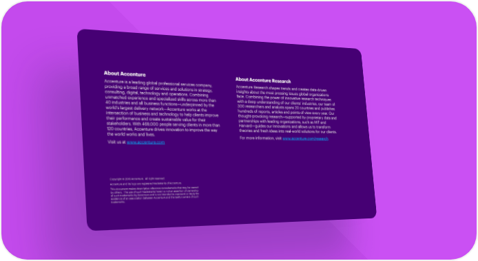 About Accenture About Accenture Research Accenture is a leading global professional services company, Accenture Research shapes trends and creates data-driven providing a broad range of services and solutions in strategy, insights about the most pressing issues global organizations consulting, digital, technology and operations. Combining face. Combining the power of innovative research techniques unmatched experience and specialized skills across more than with a deep understanding of our clients’ industries, our team of 40 industries and all business functions—underpinned by the 300 researchers and analysts spans 20 countries and publishes world’s largest delivery network—Accenture works at the hundreds of reports, articles and points of view every year. Our intersection of business and technology to help clients improve thought-provoking research—supported by proprietary data and their performance and create sustainable value for their partnerships with leading organizations, such as MIT and stakeholders. With 469,000 people serving clients in more than Harvard—guides our innovations and allows us to transform 120 countries, Accenture drives innovation to improve the way theories and fresh ideas into real-world solutions for our clients. the world works and lives. For more information, visit www.accenture.com/research Visit us at www.accenture.com Copyright © 2019 Accenture. All right reserved. Accenture and its logo are registered trademarks of Accenture. This document makes descriptive reference to trademarks that may be owned by others. The use of such trademarks herein is not an assertion of ownership of such trademarks by Accenture and is not intended to represent or imply the existence of an association between Accenture and the lawful owners of such trademarks.