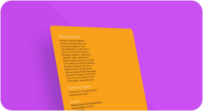 €bout €ccenture €ccenture is a global management consulting, technology services and outsourcing comany, ith more than š››,……… eole serving clients in more than ‰š… countries ‹ombining unaralleled exerience, comrehensive caabilities across all industries and business functions, and extensive research on the orld’s most successful comanies, €ccenture collaborates ith clients to hel them become higherformance businesses and governments The comany generated net revenues of ’Sœšžž billion for the fiscal year ended €ug „‰, š…‰‰ Its home age is accenturecom €ccenture Exerts To discuss any of the ideas resented in this aer lease contact‚ Bob ach anaging Director, loal Capital arets robertgachŸaccenturecom ¡‰ Љ¢ ›žš žŠžš —ean £ayson enior ecutive, Capital arets deanl‘aysonŸaccenturecom ¡›› š…¢ Œ›› ŒšŠž £ames Sroule Head of Capital arets esearch ‘amesrsrouleŸaccenturecom ¡›› š…¢ Œ›› „„Œ¢ †liver ¤night Capital arets trategy oliverhknightŸaccenturecom ¡›› š…„ „„ž 𥥢 ‹hristoher Hook Capital arets trategy christoher‘hookŸaccenturecom ¡›› š…„ „„ž ‰„¢„ Copyright © 2012 Accenture All rights reserved. Accenture, its logo, and High Performance Delivered are trademars of Accenture.
