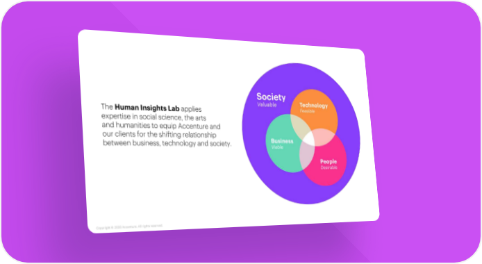 The Human Insights Lab applies expertise in social science, the arts and humanities to equip Accenture and our clients for the shifting relationship between business, technology and society. Copyright © 2020 Accenture. All rightsreserved.