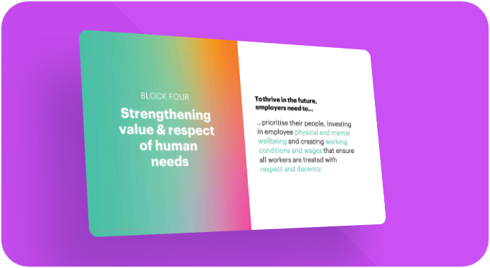 BLOCKFOUR To thrive in the future, Strengthening employers needto... …prioritise their people, investing value &respect in employee physical andmental of human wellbeing and creating working conditions and wages that ensure needs all workers are treated with respect and decency Copyright © 2020 Accenture. All rightsreserved.