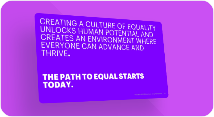 CREATING A CULTURE OF EQUALITY UNLOCKS HUMANPOTENTIAL AND CREATES AN ENVIRONMENT WHERE EVERYONE CAN ADVANCE AND THRIVE. THE PATH TO EQUAL STARTS TODAY. Copyright © 2018 Accenture. All rights reserved. 15