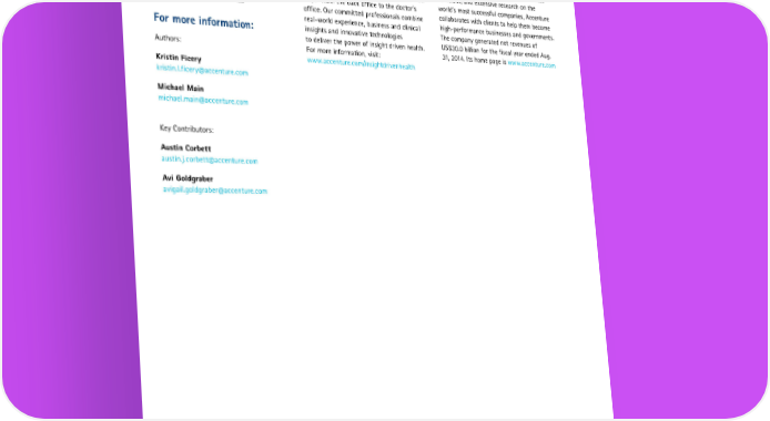 Methodology About Accenture Insight About Accenture Accenture analyzed healthcare provider Driven Health Accenture is a global management consulting, acquisition data from S&P Capital IQ Insight driven health is the foundation of more technology services and outsourcing company, from 2006-2014. Data from more than effective, efficient and affordable healthcare. with approximately 319,000 people serving 1,500 acquisitions were analyzed and That’s why the world’s leading healthcare clients in more than 120 countries. Combining categorized by type of provider organization providers and health plans choose Accenture unparalleled experience, comprehensive acquired (i.e., hospital, non-acute provider, for a wide range of insight driven health capabilities across all industries and business payer, digital company or other). Accenture services that help them use knowledge in new functions, and extensive research on the performed historical and trend analysis to ways—from the back office to the doctor’s world’s most successful companies, Accenture determine 2015-2018 forecast. office. Our committed professionals combine collaborates with clients to help them become real-world experience, business and clinical high-performance businesses and governments. For more information: insights and innovative technologies The company generated net revenues of to deliver the power of insight driven health. US$30.0 billion for the fiscal year ended Aug. Authors: For more information, visit: 31, 2014. Its home page is www.accenture.com Kristin Ficery www.accenture.com/insightdrivenhealth kristin.l.ficery@accenture.com Michael Main michael.main@accenture.com Key Contributors: Austin Corbett austin.j.corbett@accenture.com Avi Goldgraber avigail.goldgraber@accenture.com Copyright © 2015 Accenture All rights reserved. Accenture, its logo, and High Performance Delivered are trademarks of Accenture.
