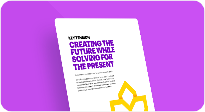 KEY TENSION CREATING THE FUTURE WHILE SOLVING FOR THE PRESENT Many healthcare leaders may be unclear where to begin. It’s difficult to determine where to invest in the intelligent technologies that will deliver the most value in the short, medium and long term. And, it’s a significant undertaking to transform in support of new business models, while also continuing to run and improve their core business. INTELLIGENT HEALTHCARE THE RACE TO REINVENT HEALTHCARE 4