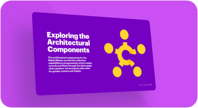 Exploring the Architectural Components The architectural components for the Digital Master provide the collective capabilities to progressively enrich master records as it flows through the data supply chain pipeline, increasing the data value for greater context and insight. Meet Your Digital Master 24