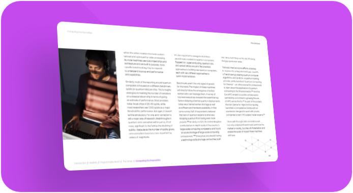 Computing the Impossible #TechVision where the entire machine has been custom It’s also important to recognize that there into “deep tech” they run the risk of having tailored and optimized for video processing. are still many models for quantum computers. that gap grow even wider. As more machines use customized chips and Trapped ion, superconducting, quantum dot, architecture and are built to purpose, more and optical lattice are just a few practical That said, there are some efforts underway specific benchmarking may be required approaches to building new quantum computers, to improve this anticipated skills gap. QuantFi, to understand true top end performance each with very different approaches to a French startup creating quantum computer and capabilities. qubit implementation. algorithms, and QURECA, a quantum training provider, jointly launched “Quantum Computing Similarly, much of the reporting around quantum Benchmarks aren’t the only signal of growth for Finance” – an online course for professionals computers is focused on a different benchmark: for this trend. The impact of these machines to learn about the application of quantum 190 qubits (or quantum bits) per chip. This is roughly will directly follow the emergence of skilled computing to the financial sector. And the analogous to tracking the number of transistors workers who can leverage them. A survey of EuroHPC project is a public–private sector on a classical silicon chip in terms of giving top-level executives revealed the belief that top partnership committed to growing the use 191 an estimate of performance. Most providers factors delaying potential quantum deployments of HPC across the EU. As part of the project, today boast chips of 20–50 qubits, while today are a trained worker shortage as well the Irish Centre for High-End Computing most researchers see 1,000 qubits as a major as software and hardware availability. In that launched a Competence Centre with an threshold for performance. But again, it doesn’t same survey, half of respondents believed accelerator designed to work with private 192 tell the whole story. For one, error correction is that lack of quantum experts is what was companies to train HPC subject matter experts. still a major area of research. Breakthroughs in stopping quantum from being even more 188 quantum error correction will be just as, if not popular. Similarly, in 2021, the United Kingdom Those with the right skills and abilities will more, significant to the field as the doubling of conducted an in-depth study of the country’s not only understand benchmarks and how the qubits – because as the number of qubits grows, large-scale computing competency and found market is moving, but they will foreshadow and error correction becomes more important by “an acute shortage of large-scale computing enable the scale of impact these machines 189 orders of magnitude. professionals.” Enterprises are already facing will have. a technology skills shortage, and as they push Introduction // WebMe // Programmable World // The Unreal // Computing the Impossible 84