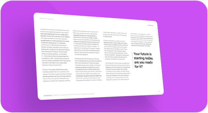 Meet Me in the Metaverse #TechVision Consider this: Enterprises that deploy human-like will that reshape what we look for outside of it? a “Responsible Metaverse,” and the actions and Answering this – and acting on it – won’t be AI aren’t just reaping the benefits of automation, What does the world of work look like when choices they make today will set the standards easy; it’s a journey riddled with uncertainty well they are pioneering new forms of collaboration organizations become more distributed or for all that follow. outside the norms of what most companies are between humans and machines. Smart materials autonomous? How do we manage a supply comfortable with. But the chance to shape the and edge capabilities are transforming what chain that cuts through different physical worlds It leaves companies at a critical moment to next decade of business, to build new worlds, people expect from their physical environments. where some cities are smart and some are not? decide their path forward. These new frontiers and to explore the brand-new markets that Enterprises selling goods in a metaverse In many ways, the new worlds companies are of technology will redefine the entire context of these worlds create doesn’t come often. environment are delivering fundamentally starting to build have no history or legacy – no every business, shaping how they will operate different products, and what’s more, they are right way to do anything. This means immense and create value for decades to come. Those piloting new modes of commerce and creating opportunity, but also that companies pushing who shy away from the uncertainty ahead best practices for the future of the internet. these boundaries will be operating far ahead will soon find themselves operating in worlds Your future is All the companies building – and building of policy and regulation. others have defined – playing by someone else’s in – these new worlds are bringing ideas and rules. But bold companies will embrace the starting today, precedents to them, shaping how people will Enterprises will find themselves on the front uncertainty and wield it as opportunity. soon live, where businesses will find opportunity, lines of establishing trust and safety and defining are you ready and what it will mean to be a responsible the human experience in these new places. The simple truth is, there’s never enough time to business in these environments. Trust will be paramount to adoption of the new think about the future, but that won’t stop it from experiences leaders are beginning to build. happening. As the foundations of the Metaverse for it? For now, it may seem that the future we’re Considerations (and concerns) already held Continuum are constructed, early entrants rocketing toward holds more questions than today around privacy, bias, fairness, and human are staking out key positions and partnerships answers. How will companies conduct business impact are becoming far more acute as the while investing in the technology backbone that and sell products, and how will consumers buy line between people’s physical and digital lives will secure leadership in this new landscape. them in these new worlds? How will human further blurs. Enterprises that wish to lead in Inevitably, every executive will need to ask: interaction unfold in the metaverse, and how this space will shoulder the mantle of building What will my role be in this new continuum? Introduction // WebMe // Programmable World // The Unreal // Computing the Impossible 8