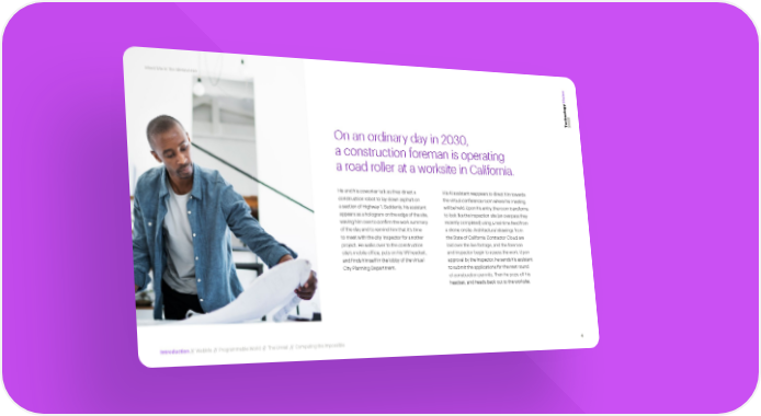 Meet Me in the Metaverse n io s i V y og l hno2 c 2 e 0 T 2 On an ordinary day in 2030, a construction foreman is operating a road roller at a worksite in California. He and his coworker talk as they direct a His AI assistant reappears to direct him towards construction robot to lay down asphalt on the virtual conference room where his meeting a section of Highway 1. Suddenly, his assistant will be held. Upon his entry, the room transforms appears as a hologram on the edge of the site, to look like the inspection site (an overpass they waving him over to confirm the work summary recently completed) using a real-time feed from of the day and to remind him that it’s time a drone onsite. Architectural drawings from to meet with the city inspector for another the State of California Contractor Cloud are project. He walks over to the construction laid over the live footage, and the foreman site’s mobile office, puts on his VR headset, and inspector begin to assess the work. Upon and finds himself in the lobby of the virtual approval by the inspector, he sends his assistant City Planning Department. to submit the applications for the next round of construction permits. Then he pops off his headset, and heads back out to the worksite. Introduction // WebMe // Programmable World // The Unreal // Computing the Impossible 4