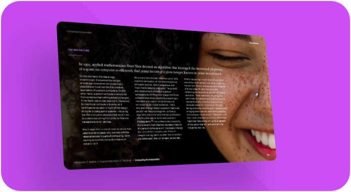 Computing the Impossible #TechVision THE BIG PICTURE In 1994, applied mathematician Peter Shor devised an algorithm that leveraged the theoretical properties of a quantum computer to efficiently find prime factors of a given integer, known as prime factorization. On the one hand, this was a huge We are at a monumental inflection point. With What’s happening in cybersecurity portends breakthrough: It expanded the horizon quantum computers, all current encryptions one of the most radically disruptive trends on of what was considered computationally (of health records, bank transactions, and the horizon. We are witnessing the emergence possible and it outlined the first practical much more) become crackable. The growth of a new class of machines which are application of quantum computers. On the and development of today’s quantum stretching the boundaries of what computers other hand, quantum computers were so far computers are shifting Shor’s algorithm from can solve. These machines, including but from existence that nothing actually changed. a distant theoretical solution to a seemingly not limited to quantum, are pushing Moore’s Prime factorization was essentially impossible inevitable and urgent risk to the security Law aside as they jump to a new curve of for traditional computers to solve, so it surrounding our digital existence. That’s compute capability. In doing so, they are continued to be used in much of the design why even though today’s quantum machines taking problems once thought impossible and of digital cryptographic systems – including are still not mature enough to run Shor’s bringing them into the realm of the possible. the RSA encryption standard that we still use algorithm, there are nevertheless preemptive And because industries are in fact defined by to protect everything from email to financial efforts underway to build post-quantum their most intractable problems, when these 169 transactions to IoT devices. cryptography. The professionals closest to machines mature they will ignite a cascade this problem know that the inevitable maturity of disruption that will revolutionize what Shor’s algorithm is one of many solutions that of quantum computers will irrevocably change industries look like. used to exist on paper only, but now with the the rules of their industry, and if they’re latest advances in quantum computing, we’re caught playing catch-up after the computers starting to build the computers that could are developed, they will already be too late. actually run it. Introduction // WebMe // Programmable World // The Unreal // Computing the Impossible 74