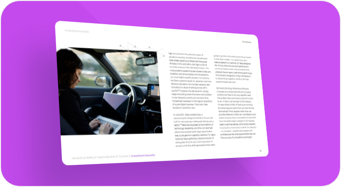Computing the Impossible #TechVision F@h demonstrates the potential power of going to get them the performance they needed parallel computing, and what can be achieved to train their models – no matter how many when sheer scale is combined with the power were clustered in a machine. So Tesla designed of today’s CPUs and GPUs. But F@h is a bit of the D1 Dojo chip that was built specifically to an outlier because of its distributed nature. The run the computer vision neural networks that most powerful supercomputer clusters today are underpin the company’s self-driving technology. localized, and almost always commissioned to The company designed a unique architecture run small, highly specific projects. For instance, to cluster these together, and thus the Dojo the Sierra supercomputer at Lawrence Livermore supercomputer was born. National Laboratory runs nuclear weapons test simulations in place of setting bombs off in But here’s the thing: While the confluence 176 real life. However, the demands for cutting of access to a unique data set and company edge computing power that were once isolated ambition led Tesla to this very specific need, to low-frequency events are now becoming the problem they are trying to solve isn’t niche increasingly necessary to the regular operations at all – in fact it’s at the heart of the industry. of a post-digital business. That’s why Tesla It’s easy today to think of Tesla as an anomaly. decided to build their own. But what happens when their cars start driving themselves? What happens when they can In June 2021, Tesla unveiled Dojo, a provide a feature no other car manufacturer can supercomputer designed entirely in-house and deliver, because those competitors simply don’t built for one purpose: making self-driving cars a have the technology to design it? Companies 177 reality. Tesla has long been at the forefront of need to ask themselves: Is this what’s required technology leadership, and this is an example to compete in tomorrow’s market? Are industry where they pushed technology beyond what – or company – specific chip designs and they could get from specialty vendors. For years, architectures the white space where they can Tesla had been gathering massive amounts of find a source of competitive advantage? driving data from its cars, and it was clear no amount of off-the-shelf generalized chips were Introduction // WebMe // Programmable World // The Unreal // Computing the Impossible 79