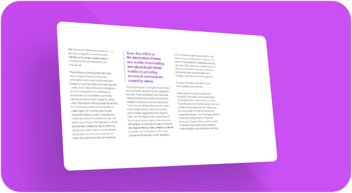 Soon, they will be at the intersection of many new worlds, from building new physical and virtual realities to providing services in environments created by others. Summary Page 2 Page 4