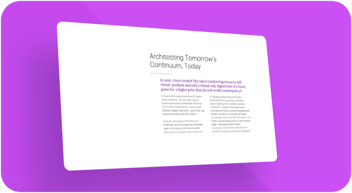 In 2021, Gucci created The Gucci Garden Experience to sell virtual products and sold a virtual-only digital twin of a Gucci , purse for a higher price than its real-world counterpart.56 Summary Page 6 Page 8