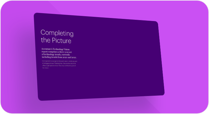 Accenture’s Technology Vision report comprises a three-year set of technology trends, currently including trends from 2020 and 2021. Summary Page 15 Page 17