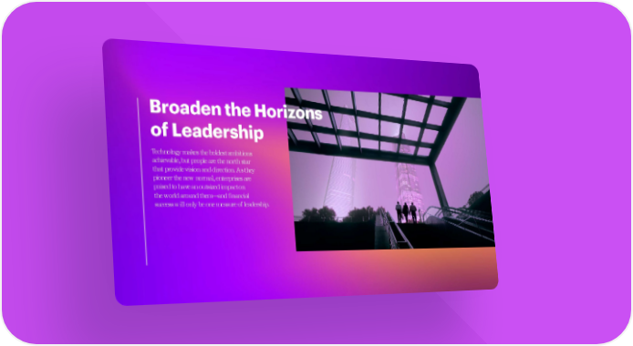 BroadentheHorizons ofLeadership Technologymakestheboldestambitions achievable,butpeoplearethenorthstar thatprovidevisionanddirection.As they pioneerthenewnormal,enterprisesare poisedtohaveanoutsizedimpacton theworldaroundthem—andfinancial success willonlybeonemeasureofleadership.