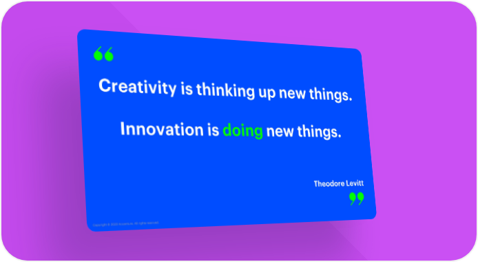 Creativity is thinking up new things. Innovation is doing new things. Theodore Levitt Copyright © 2020 Accenture. All rightsreserved.