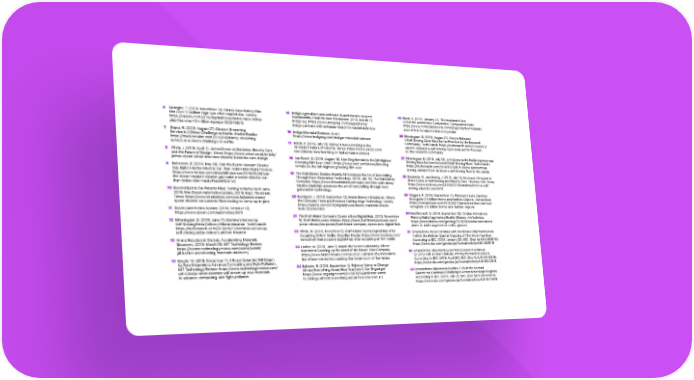 6 Spangler, T. (2019, November 13). Disney Says Disney Plus 15 Indigo Agriculture and Anheuser-Busch Partner to Meet 25 Black, S. (2019, January 31). Thermoplastic Door Has Over 10 Million Sign-Ups After Launch Day. Variety: Sustainability Goals for Rice Production. (2019, March 11). A First for Automotive Composites. CompositesWorld: https://variety.com/2019/digital/news/disney-says-disney- Indigo Ag: https://www.indigoag.com/pages/news/ https://www.compositesworld.com/blog/post/thermoplastic- plus-has-over-10-million-signups-1203403515 indigo-partners-with-anheuser-busch-for-sustainable-rice door-a-first-for-automotive-composites 7 Gupta, R. (2019, August 27). Disney+ Streaming 16 Indigo Microbial Science. (n.d.): 26 Etherington, D. (2019, August 21). Waymo Releases Service Is A Direct Challenge to Netflix. Market Realist: https://www.indigoag.com/indigo-microbial-science A Self-Driving Open Data Set for Free Use by the Research https://marketrealist.com/2019/08/disney-streaming- 17 Rubin, P. (2019, July 18). Disney’s New Lion King Is the Community. TechCrunch: https://techcrunch.com/2019/08/21/ service-is-a-direct-challenge-to-netflix VR-Fueled Future of Cinema. Wired: https://www.wired.com/ waymo-releases-a-self-driving-open-data-set-for-free-use- 8 White, J. (2018, April 7). James Dyson on Batteries, Electric Cars story/disney-new-lion-king-vr-fueled-future-cinema by-the-research-community and the Future of Design. Wired: https://www.wired.co.uk/article/ 18 Van Boom, D. (2019, August 18). Lion King Remake Is the 9th Highest- 27 Etherington, D. (2019, July 23). Lyft Opens to the Public Autonomous james-dyson-wired-interview-electric-batteries-cars-design Grossing Film Ever. CNET: https://www.cnet.com/news/lion-king- Driving Data Set from its Level 5 Self-Driving Fleet. TechCrunch: 9 Roberson, B. (2019, May 29). Can the Dyson Vacuum Cleaner remake-is-the-9th-highest-grossing-film-ever https://techcrunch.com/2019/07/23/lyft-opens-autonomous- Guy Build A Better Electric Car Than Tesla’s Elon Musk? Forbes: driving-dataset-from-its-level-5-self-driving-fleet-to-the-public https://www.forbes.com/sites/billroberson/2019/05/29/can- 19 The Walt Disney Studios StudioLAB Advances the Art of Storytelling 28 Boudette, N., and Ewing, J. (2019, July 12). Ford and VW Agree to the-dyson-vacuum-cleaner-guy-build-a-better-electric-car- Through Next-Generation Technology. (2018, July 16). The Walt Disney Share Costs of Self-Driving and Electric Cars. The New York Times: than-teslas-elon-musk/#5a2e662411c2 Company: https://www.thewaltdisneycompany.com/the-walt-disney- https://www.nytimes.com/2019/07/12/business/ford-vw-self- studios-studiolab-advances-the-art-of-storytelling-through-next- driving-electric-cars.html 10 Dyson Electric Car Patents Filed, Testing to Ramp Up in June. generation-technology (2019, May Dyson Automotive Update. (2019, May). The Straits 20 Roettgers, J. (2018, September 13). Inside Disney’s StudioLab, Where 29 Wiggers, K. (2019, September 17). Pinterest’s Lens Can Now Times: https://www.straitstimes.com/world/united-states/ the Company Tests and Previews Cutting-Edge Technology. Variety: Recognize 2.5 Billion Home and Fashion Objects. VentureBeat: dyson-electric-car-patents-filed-testing-to-ramp-up-in-june https://variety.com/2018/digital/news/disney-studiolab-inside- https://venturebeat.com/2019/09/17/pinterests-lens-can-now- 11 Dyson Automotive Update. (2019, October 10): look-1202940482 recognize-2-5-billion-home-and-fashion-objects https://www.dyson.com/automotive.html 21 The Kraft Heinz Company Opens a New Digital Hub. (2018, November 30 Machkovech, S. (2019, September 25). Oculus Announces 12 Etherington, D. (2019, June 17). Domino’s Serves Up 5). Kraft Heinz press release: https://news.kraftheinzcompany.com/ Plans to Build Augmented Reality Glasses. ArsTechnica: Self-Driving Pizza Delivery Pilot in Houston. TechCrunch: press-release/corporate/kraft-heinz-company-opens-new-digital-hub https://arstechnica.com/gaming/2019/09/oculus-announces- https://techcrunch.com/2019/06/17/dominos-serves-up- plans-to-build-augmented-reality-glasses self-driving-pizza-delivery-pilot-in-houston 22 White, M. (2018, November 6). Kraft Heinz Opens Digital Hub After 31 Smartphone Woes Continue with Worldwide Shipments Down Acquiring AI Firm Wellio. FoodBev Media: https://www.foodbev.com/ 4.9% in the Holiday Quarter Capping off the Worst Year Ever, 13 AI and Robotics in the Lab: Accelerating Materials news/kraft-heinz-opens-digital-hub-after-acquiring-ai-firm-wellio According to IDC. (2019, January 30). IDC. (Doc #prUS44826119): Discovery. (2019, March 25). MIT Technology Review: 23 Locker, M. (2019, June 1). Inside the Secret Laboratory Where https://www.idc.com/getdoc.jsp?containerId=prUS44826119 https://events.technologyreview.com/video/watch/ Marriott is Cooking Up the Hotel of the Future. Fast Company: jill-becker-accelerating-materials-discovery https://www.fastcompany.com/90350173/inside-the-innovation- 32 Smartphone Shipments Experience Deeper Decline in 14 Knight, W. (2018, November 7). A Robot Scientist Will Dream lab-where-marriott-is-creating-the-hotel-room-of-the-future Q1 2019 with a Clear Shakeup Among the Market Leaders, Up New Materials to Advance Computing and Fight Pollution. According to IDC. (2019, April 30). IDC. (Doc #prUS45042319): MIT Technology Review: https://www.technologyreview.com/ 24 Baldwin, R. (2018, September 4). Polestar Wants to Change https://www.idc.com/getdoc.jsp?containerId=prUS45042319 s/612388/a-robot-scientist-will-dream-up-new-materials- Almost Everything About How You Own A Car. Engadget: 33 Smartphone Shipments Decline 2.3% in the Second to-advance-computing-and-fight-pollution https://www.engadget.com/2018/09/04/polestar-wants- Quarter on Continued Challenges Across Most Major Regions, to-change-almost-everything-about-how-you-own-a-c According to IDC. (2019, July 31). IDC. (Doc #prUS45414919): https://www.idc.com/getdoc.jsp?containerId=prUS