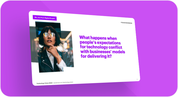 We, the Post-Digital People #TECHVISION2020 What happens when people’s expectations for technology conflict with businesses’ models fordelivering it? Technology Vision 2020 | accenture.com/technologyvision 2
