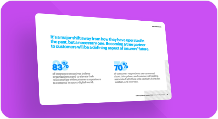 #TECHVISION2020 It’s a major shift away from how they have operated in the past, but a necessary one. Becoming a true partner to customers will be a defining aspect of insurers’ future. 83% % 83 70 70 of insurance executives believe of consumer respondents are concerned organizations need to elevate their about data privacy and commercial tracking relationships with customers as partners associated with their online activity, behavior, to compete in a post-digital world. location, and interests. Technology Vision for Insurance 2020 | We, the Post-Digital People 19