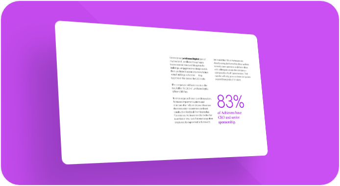 For instance, Lendlease Digital (part of We found that 16% of Achievers are multinational Lendlease Group) hopes already using platforms that allow workers to produce architectural blueprints for to easily pose questions and share ideas buildings using generative design and AI, with colleagues across the company— then use those blueprints to manufacture compared to 4% of Experimenters. That actual buildings in factories—fitting number will only grow as these companies together all the pieces like LEGO sets. expand their pools of AI talent. The company’s bold vision starts at the top, led by the CEO of Lendlease Digital, William (Bill) Ruh. To encourage such end-to-end innovation, Achievers implement systems and structures that help employees showcase 83% their innovation experiments and seek constructive feedback from leadership. of Achievers have For instance, Achievers tend to be the first CEO and senior to embrace new tools that encourage their employees to experiment and innovate. sponsorship. The art of AI maturity—Advancing from practice to performance 20