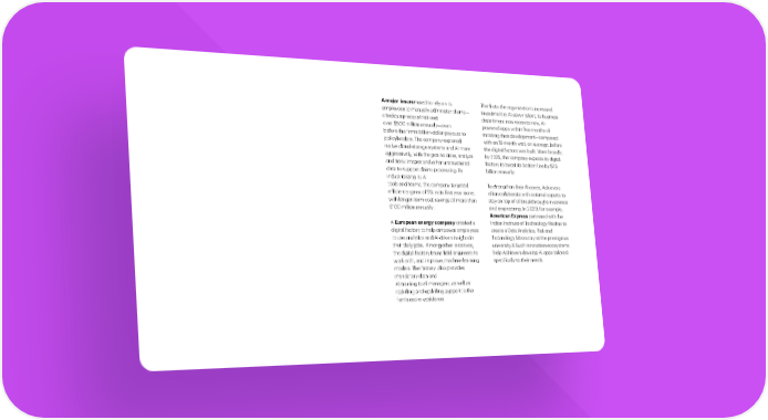 A major insurer used to rely on its Thanks to the organization’s increased employees to manually administer investment in AI-savvy talent, its business claims—a tedious process that cost department now receives new, AI- over $500 million annually—even powered apps within five months of before the firm’s billion-dollar payouts to initiating their development—compared policyholders. The company explored with an 18-month wait, on average, before native cloud-storage systems and AI the digital factory was built. More broadly, more aggressively, with the goal to store, by 2025, the company expects its digital analyze and track images and other factory to boost its bottom line by $1.5 unstructured data to support claims billion annually. processing. By industrializing its AI tools and teams, the company targeted To strengthen their AI cores, Achievers efficiency gains of 5% in its first year alone, often collaborate with external experts with longer-term cost savings of more to stay on top of of breakthroughs in than $100 million annually. science and engineering. In 2020, for example, American Express partnered A European energy company created with the Indian Institute of Technology a digital factory to help empower Madras to create a Data Analytics, Risk and employees to use analytics and AI-driven Technology laboratory at the prestigious 6 insights in their daily jobs. Among other university. Such innovation ecosystems initiatives, the digital factory trains field help Achievers develop AI apps tailored engineers to work with, and improve, specifically to their needs. machine learning models. The factory also provides mandatory data and AI training to all managers, as well as reskilling and upskilling support to the firm’s entire workforce. The art of AI maturity—Advancing from practice to performance 24