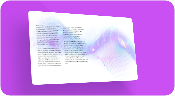 Achievers also develop proactive AI Japanese e-commerce giant Rakuten talent strategies to stay at the forefront of established an “AI Promotion Department” industry trends. In addition to hiring, this in 2016 to accelerate efforts to infuse could mean partnering with or acquiring AI into the company’s 70+ diverse specialist companies to fill critical roles businesses. By 2018, the department (such as data or behavioral scientists, helped turn more than 30 AI pilot 5 social scientists and ethicists). It also projects into successful offerings. means having a plan to get these diverse, 78% multidisciplinary workers to collaborate, And a leading Southeast Asian oil and create and sustain maximum value from gas firm built an AI-powered, “gamified” of Achievers have the company’s data-science capabilities. learning platform to expand employees’ digital fluency. It also created a cloud- mandatory AI trainings In 2018, US utility Exelon established an based performance reviewer that for most employees, from Analytics Academy. This training upskilled scrutinized a decade’s worth of employee employees like Jeffrey Swiatek, who, at the data to recommend workers best suited product development age of 41, transitioned from his longtime for various digital roles. The innovation engineers to C-suite role as a maintenance worker into a saved the firm’s HR department significant executives. higher-paying position as a quantitative time filling positions. It also reduced engineer. Swiatek has since used his scope for managerial bias in promotional training to write predictive software that decisions and helped workers assess and saved Exelon an estimated $1 million over close digital-skills gaps. 4 eight years on equipment maintenance. The art of AI maturity—Advancing from practice to performance 22