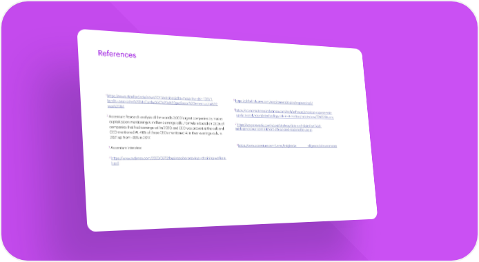 References 1 https://news.stanford.edu/news/2011/october/john-mccarthy-obit-102511. 5 https://global.rakuten.com/corp/careers/topics/engineering3/ html#:~:text=John%20McCarthy%2C%20a%20professor%20emeritus,He%20 6 was%2084 https://economictimes.indiatimes.com/tech/software/american-express-sets- up-data-analytics-risk-technology-lab-in-iit-madras/articleshow/77925793.cms 2 Accenture Research analysis of the world’s 2,000 largest companies by market 7 capitalization mentioning AI in their earnings calls. Formula is based on CEOs of https://www.novartis.com/about/strategy/data-and-digital/artificial-intelligence/ companies that had earnings call in 2020, and CEO was present at the call, and our-commitment-ethical-and-responsible-use-ai CEO mentioned AI. 46% of these CEOs mentioned AI in their earnings calls, in 2021 up from ~35% in 2017. 8 https://www.accenture.com/us-en/insights/artificial-intelligence/ai-investments 3 Accenture Interview 4 https://www.nytimes.com/2020/07/13/business/coronavirus-retraining-workers. html The art of AI maturity—Advancing from practice to performance 39