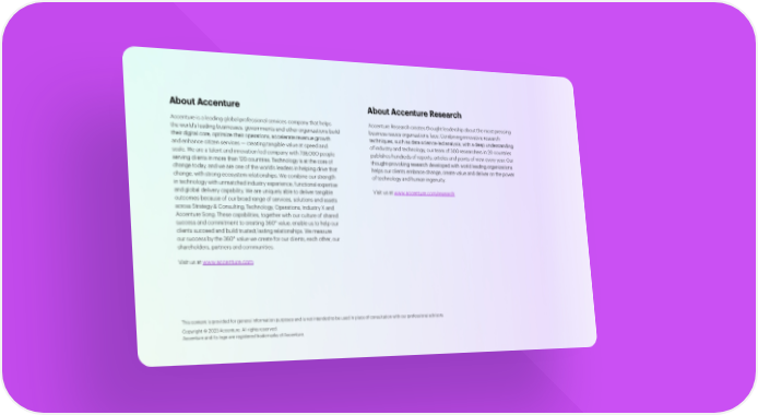 About Accenture About Accenture Research Accenture is a leading global professional services company that helps Accenture Research creates thought leadership about the most pressing the world’s leading businesses, governments and other organizations build business issues organizations face. Combining innovative research their digital core, optimize their operations, accelerate revenue growth techniques, such as data science-led analysis, with a deep understanding and enhance citizen services — creating tangible value at speed and of industry and technology, our team of 300 researchers in 20 countries scale. We are a talent and innovation led company with 738,000 people publishes hundreds of reports, articles and points of view every year. Our serving clients in more than 120 countries. Technology is at the core of thought-provoking research developed with world leading organizations change today, and we are one of the world’s leaders in helping drive that helps our clients embrace change, create value and deliver on the power change, with strong ecosystem relationships. We combine our strength of technology and human ingenuity. in technology with unmatched industry experience, functional expertise and global delivery capability. We are uniquely able to deliver tangible Visit us at www.accenture.com/research outcomes because of our broad range of services, solutions and assets across Strategy & Consulting, Technology, Operations, Industry X and Accenture Song. These capabilities, together with our culture of shared success and commitment to creating 360° value, enable us to help our clients succeed and build trusted, lasting relationships. We measure our success by the 360° value we create for our clients, each other, our shareholders, partners and communities. Visit us at www.accenture.com This content is provided for general information purposes and is not intended to be used in place of consultation with our professional advisors. Copyright © 2023 Accenture. All rights reserved. Accenture and its logo are registered trademarks of Accenture.