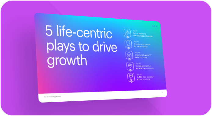 Play #1 Gain a profound 5 life-centric understanding of people Play #2 Broaden your canvas plays to drive for value creation Play #3 Creatively transcend industry norms growth Play #4 Design a delightful experience continuum Play #5 Build a fluid operation across functions The life centricity playbook 7
