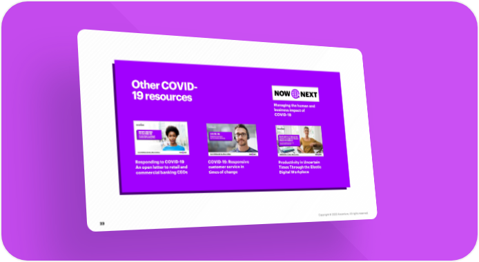 Other COVID- 19 resources Managing the human and business impact of COVID-19 Responding to COVID-19 COVID-19: Responsive Productivity in Uncertain An open letter to retail and customer service in Times Through the Elastic commercial banking CEOs times of change Digital Workplace 23