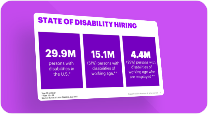 STATE OF DISABILITY HIRING 29.9M 15.1M 4.4M persons with (51%) persons with (29%) persons with disabilities in disabilities of disabilities of the U.S.* working age.** working age who are employed ** *Age 16 and over **Ages 16 – 64 Copyright © 2018 Accenture. All rights reserved. 5 Source: Bureau of Labor Statistics, July 2018