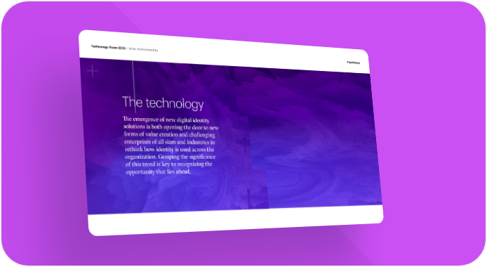 Technology Vision 2023 | When Atoms meet Bits #TechVision The technology e emergence of new digital identi solutions is both opening the door to new forms of value creation and challenging enterprises of all sizes and industries to rethink how identi is used across the organization. Grasping the signi‹cance of this trend is key to recognizing the opportuni that lies ahead.