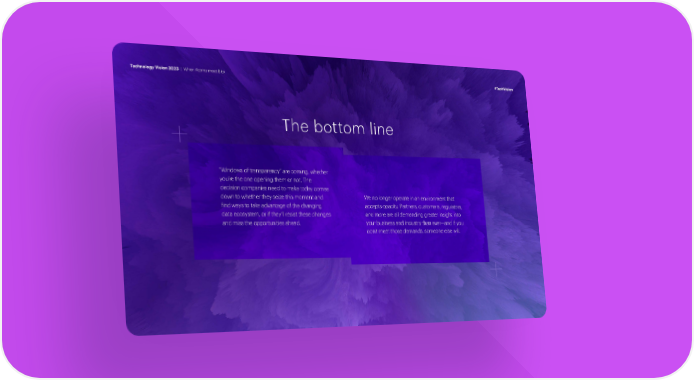 Technology Vision 2023 | When Atoms meet Bits #TechVision The bottom line “Windows of transparency” are coming, whether you’re the one opening them or not. The decision companies need to make today comes down to whether they seize this moment and We no longer operate in an environment that 昀椀nd ways to take advantage of the changing accepts opacity. Partners, customers, regulators, data ecosystem, or if they’ll resist these changes and more are all demanding greater insight into and miss the opportunities ahead. your business and industry than ever—and if you don’t meet those demands, someone else will.