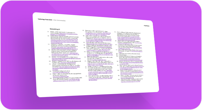 Technology Vision 2023 | When Atoms meet Bits #TechVision Generalizing AI 165. Zhavoronkov, A. (2021, July 19). Wu Dao 2.0 – Bigger, 176. Alvi, A., and Kharya, P. (2021, October 11). Using DeepSpeed Stronger, Faster AI from China. Forbes: https://www.forbes. and Megatron to Train Megatron-Turing NLG 530B, the 155. Veisdal, J. (2019, September 12). The Birthplace of AI. com/sites/alexzhavoronkov/2021/07/19/wu-dao-20bigger- World’s Largest and Most Powerful Generative Language Cantor’s Paradise: https://www.cantorsparadise.com/the- stronger-faster-ai-from-china/?sh=35dcf4e26fb2 Model. Microsoft Research Blog: https://www.microsoft. birthplace-of-ai-9ab7d4e5fb00 166. Gault, M. (2022, August 31). An AI-Generated Artwork Won com/en-us/research/blog/using-deepspeed-and-megatron- 156. Geoffrey Hinton: a look at the proli昀椀c career of AI and deep First Place at a State Fair Fine Arts Competition, and Artists to-train-megatron-turing-nlg-530b-the-worlds-largest-and- learning pioneer behind backpropagation, unsupervised Are Pissed. Vice: https://www.vice.com/en/article/bvmvqm/ most-powerful-generative-language-model/ learning. (2022, May 19). Ai.nl: https://www.ai.nl/arti昀椀cial- an-ai-generated-artwork-won-昀椀rst-place-at-a-state-fair-昀椀ne- 177. Alford, A. (2022, June 7). Meta Open-Sources 175 Billion arts-competition-and-artists-are-pissed Parameter AI Language Model OPT. InfoQ: https://www.infoq. intelligence/geoffrey-hinton-a-look-at-the-proli昀椀c-career- 167. A Generalist Agent. (2022, November 10). Deepmind.com: com/news/2022/06/meta-opt-175b/ of-ai-and-deep-learning-pioneer-behind-backpropagation- unsupervised-learning/ https://www.deepmind.com/publications/a-generalist-agent 178. Introducing PCL-BAIDU Wenxin (ERNIE 3.0 Titan), the World’s 157. Krizhevsky, A., Sutskever, I., et al. (2012). ImageNet 168. ChatGPT: Optimizing Language Models for Dialogue. (2022, First Knowledge Enhanced Multi-Hundred-Billion Model. November 30). OpenAI: https://openai.com/blog/chatgpt/ (2021, December 28). Baidu Research: http://research.baidu. Classi昀椀cation with Deep Convolutional Neural Networks. 169. Roose, K. (2022, December 5). The Brilliance and Weirdness com/Blog/index-view?id=165 NIPS 2012: https://papers.nips.cc/paper/2012/hash/ c399862d3b9d6b76c8436e924a68c45b-Abstract.html of ChatGPT. The New York Times: https://www.nytimes. 179. Liang, J. (2022, May 1). Foundation Models and the Future of 158. Olanoff, D. (2015, December 11). Arti昀椀cial Intelligence com/2022/12/05/technology/chatgpt-ai-twitter.html Multi-Modal AI. Last Week in AI: https://lastweekin.ai/p/multi- 170. Kreitman, A. (2022, December 13). Why My Writing Career Is modal-ai Nonpro昀椀t OpenAI Launches With Backing From Elon Just About Over. The Marketing Advocate: https://medium. 180. On the Opportunities and Risks of Foundation Models. Musk and Sam Altman. TechCrunch: https://techcrunch. com/the-marketing-advocate/why-my-writing-career-is-just- 181. A Generalist Agent. com/2015/12/11/non-pro昀椀t-openai-launches-with-backing- about-over-deece661eaa2 182. Heikkilä, M. (2022, May 23). The hype around DeepMind’s from-elon-musk-and-sam-altman/ 159. AlphaGo: The Challenge Match. (n.d.). Deepmind.com: 171. GPT-4 is OpenAI’s most advanced system, producing safer new AI model misses what’s actually cool about it. MIT https://www.deepmind.com/research/highlighted-research/ and more useful responses. (n.d.). Technology Review: https://www.technologyreview. alphago/the-challenge-match OpenAI: https://openai.com/product/gpt-4 com/2022/05/23/1052627/deepmind-gato-ai-model-hype/ 160. Vaswani, A., Shazeer, N., et al. (2017, June 12). Attention Is All 172. Wiggers, K. (2023, March 14). OpenAI releases GPT-4, a 183. Merritt, R. (2022, March 25). What is a Transformer Model? You Need. arXiv: https://arxiv.org/abs/1706.03762 multimodal AI that it claims is state-of-the-art. TechCrunch: NVIDIA: https://blogs.nvidia.com/blog/2022/03/25/what-is- 161. Johnson, K. (2019, September 26). Hugging Face https://techcrunch.com/2023/03/14/openai-releases-gpt-4- a-transformer-model/ launches popular Transformers NLP library for TensorFlow. ai-that-it-claims-is-state-of-the-art/ 184. Huge “foundation models” are turbo-charging AI progress. VentureBeat: https://venturebeat.com/business/hugging- 173. Vaswani, A., Shazeer, N., et al. Attention Is All You Need. (2022, June 11). The Economist: https://www.economist.com/ face-launches-popular-transformers-nlp-library-for- 174. Ho, V. (2022, May 24). Build: Azure OpenAI Service helps interactive/brie昀椀ng/2022/06/11/huge-foundation-models- customers accelerate innovation with large AI models; are-turbo-charging-ai-progress tensor昀氀ow/ Microsoft expands availability. Microsoft: https://blogs. 185. Heaven, W. (2021, December 21). 2021 was the year of 162. The Arti昀椀cial Intelligence Act. (n.d.): microsoft.com/ai/azure-openai-service-helps-customers- monster AI models. MIT Technology Review: https://www. https://arti昀椀cialintelligenceact.eu/ accelerate-innovation-with-large-ai-models-microsoft- technologyreview.com/2021/12/21/1042835/2021-was-the- 163. Brown, T., Mann, B., et al. (2020, May 28). Language Models expands-availability/ year-of-monster-ai-models/ are Few-Shot Learners. arXiv: https://arxiv.org/abs/2005.14165 175. Dai, A., and Du, N. (2021, December 9). More Ef昀椀cient In- 186. Alayrac, J., Donahue, J. et al. (2022, April 29). Flamingo: a 164. On the Opportunities and Risks of Foundation Models. (2021, Context Learning with GLaM. Google Research: https:// Visual Language Model for Few-Shot Learning. arXiv: August 16). Stanford University: https://fsi.stanford.edu/ ai.googleblog.com/2021/12/more-ef昀椀cient-in-context- https://arxiv.org/abs/2204.14198 publication/opportunities-and-risks-foundation-models learning-with.html 187. Announcing the 2022 AI Index Report. (2022). Stanford University Human-Centered Arti昀椀cial Intelligence: https://hai.stanf